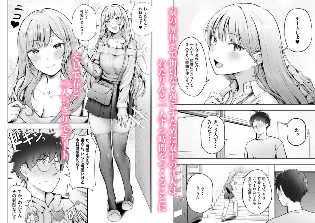 突然知らされた寮の解体。受け入れられない現実に泣きながら気持ちをぶつける寮生3人だったが、わたりんの言葉で残された時間を大切に過ごすことに。3人で話し合い、一人ずつわたりんとの時間を作ることに決まる。最初は春との二人きりデート。いつもと違う一面を見せる春が、映画デート中に突然迫ってきて…。